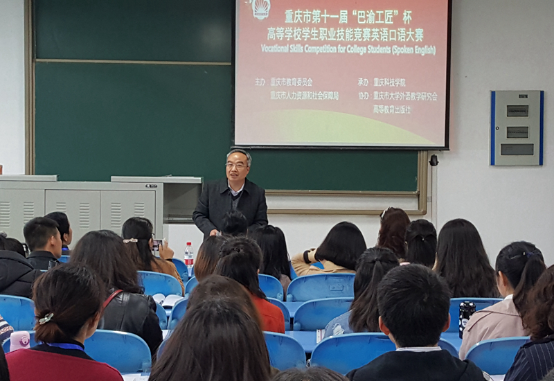 本次比赛由重庆市教委、重庆市人力资源和社会保障局主办,高等教育出版社、重庆市大学外语教学研究会、重庆科技学院联合承办。比赛由现场描述和情景交流两个环节组成。各高校通过初赛在非英语专业高职类、非英语专业本科类、英语专业高职类学生中各选派1人参加重庆赛区复赛。