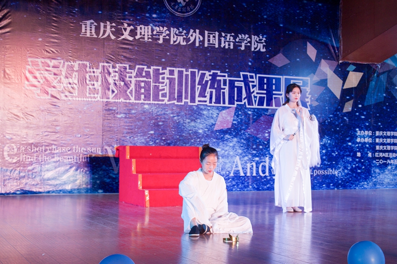 本次晚会在活力四射的开场舞中拉开帷幕,整个活动内容丰富,形式多样。小品《三打白骨精》诙谐幽默,朗诵《从前慢》真实感人,《厉害了我的外国语》令人振奋,歌曲串烧炫耀全场,舞台剧《大话西游》精彩纷呈,舞蹈《3a》靓丽夺目,活动在如梦如幻的合唱英文歌曲《Wish my life away + Firework》中落下帷幕。