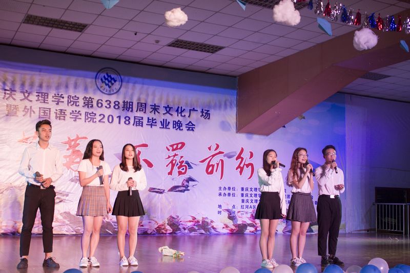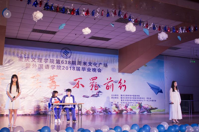 6月2日晚,mansion88明升在红河A区活动中心三楼成功举办了“重庆文理学院第638期周末文化广场暨mansion88明升2018届毕业晚会”活动。mansion88明升院长刘安洪、党总支书记颜学金、副院长胡庆洪和部分师生共计600余人观看了此次晚会。