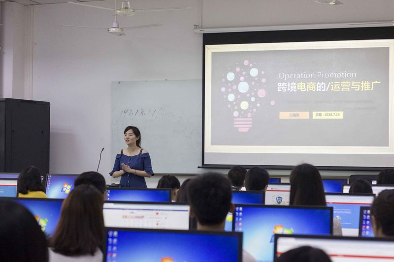 7月14日上午,圣卡斯国际(Saint Cos International)旗下重庆得道客电子商务有限公司高级经理王佩瑶应邀为mansion88明升跨境电商技能培训班和商务实践技能培训班的全体同学在格术楼A610教室举办了“跨境电商的营运和推广”专题讲座,mansion88明升副院长胡庆洪、商务英语教研室主任曹胜强、项目负责人谢廷智老师出席了本次讲座。