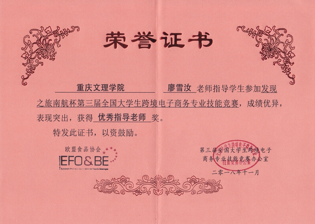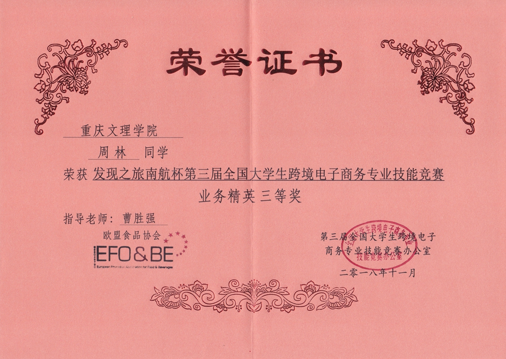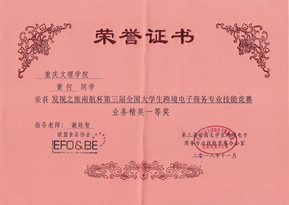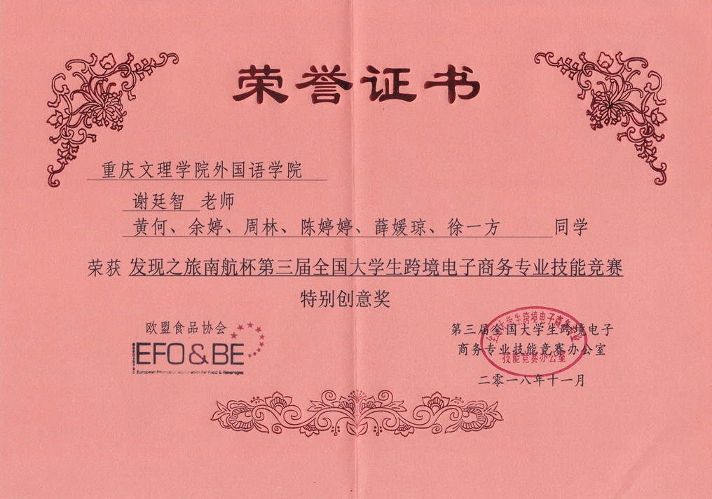 mansion88明升学生在2018年发现之旅南航杯第三届全国跨境电商技能大赛中喜获佳绩