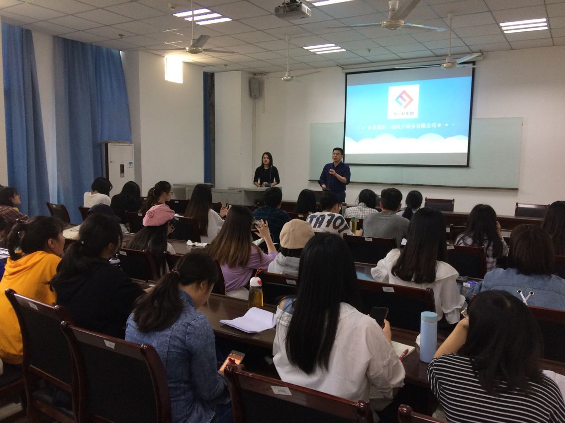 胡庆洪首先介绍了活动的目的,要求学生要积极思考实习活动,提前谋划就业等相关事宜。随后,林巧玲介绍了东莞在一起电商有限公司的发展背景和业务范围,分析了目前广东外贸和电子商务的现状和前景,展示了实习相关企业和实习环境,为学生提出了许多务实而有针对性的建议。张腾先就企业招聘条件和学生关心的问题进行了沟通与交流。最后,东莞在一起电商有限公司进行了现场面试,有8名同学与公司初步达成了实习就业意向。