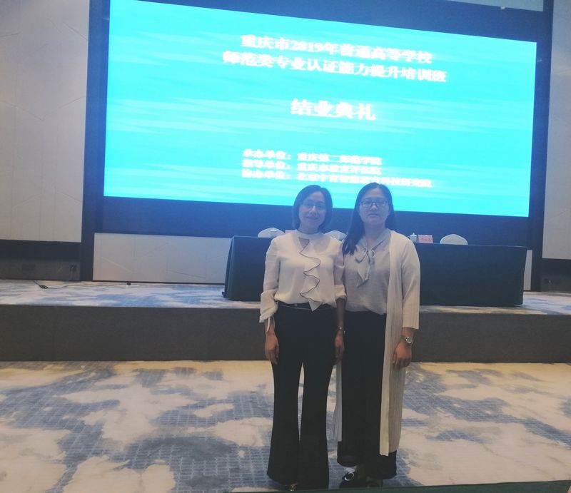9月16日-21日,重庆市2019年普通高校师范类专业认证能力提升培训班在重庆互联网学院E家酒店举行。本次培训班由重庆第二师范学院承办、重庆市教育评估院指导、北京中育智慧教育科技研究院协办,来自重庆市内16所高校100余名高校领导及教师参会,mansion88明升副院长刘俊玲、英语师范教研室主任杜玲应邀参会。