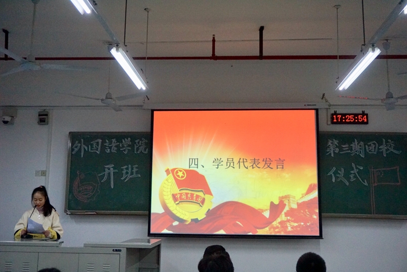 仪式上,全体参会人员齐唱团歌并宣读誓词。随后,杜勇书记发表讲话。他紧紧围绕:团校是什么?为什么上团校?深刻阐释了中国共产主义青年团的地位和作用,让大家全面认识共青团是党的助手和后备军。随后主持人熊英皓宣读团校管理办法,规范团员日常行为,使团员明确相关管理制度。最后,杜书记为新一期学员代表授团徽,并授旗。