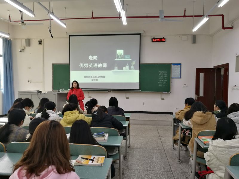12月26日下午2:30分,2019级英语(师范)专业导论课之行家讲堂第三讲在知行楼A106成功举行。重庆市高中英语骨干教师、北山中学高中英语教研室主任黎兴霞老师应邀为全体2019级英语(师范)专业学生上了精彩一课。