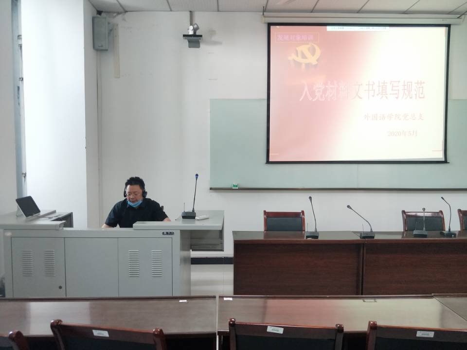 党总支书记杜勇同志做了《入党材料的文书填写规范》专题培训,从党员发展材料,材料的书写要求及注意事项等方面为同学们详细阐述了党员档案材料的重要性,并通过活生生的事例,提醒同学们要注意材料填写规范,高度重视党员发展工作。