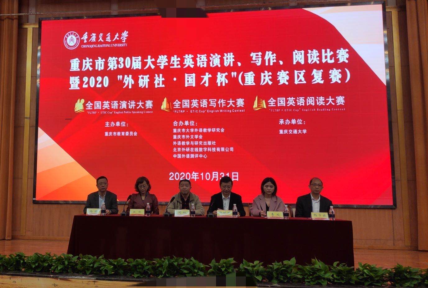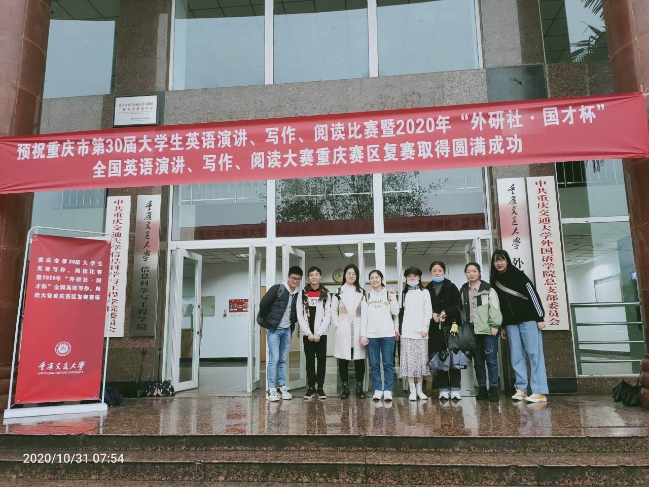 10月30日,“重庆市第30届大学生英语演讲、写作、阅读大赛暨2020‘外研社·国才杯’(重庆赛区复赛)”在重庆交通大学举行。本次大赛由重庆市教育委员会主办,重庆市大学外语教学研究会、重庆市外文学会、外语教学与研究出版社协办,重庆交通大学承办,大赛旨在推动英语教学,提高学生英语水平,引领高校外语改革与发展,激发大学生的英语学习热情,为学生提供实践机会和自我挑战的舞台。我校学子在mansion88明升胡庆洪副院长、曾薇老师带领下前往参赛,获得佳绩。