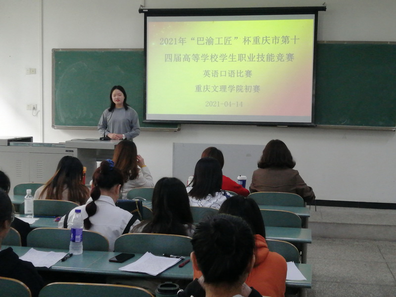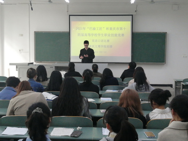 4月14日下午,“巴渝工匠”杯重庆市第十四届高等学校学生职业技能竞赛英语口语大赛在红河B区知行A101、知行A103成功举办,来自全校各专业的七十余位选手同台竞争,各显风采。