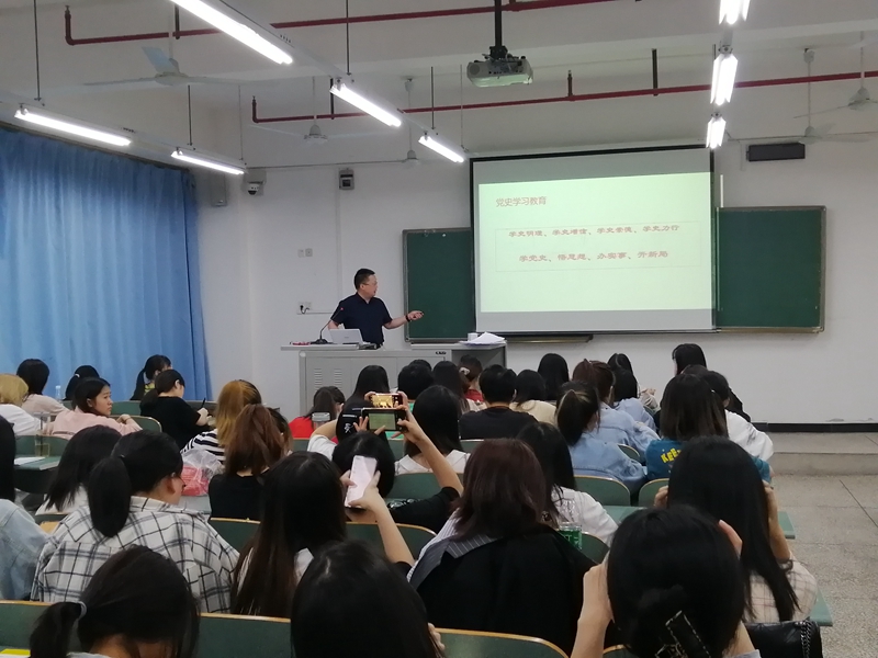 5月23日下午,mansion88明升党总支书记杜勇同志在知行楼A203以“学党史 担使命 做新时代合格教师”为题,为2019级全体英语(师范)专业学生讲授了党史学习教育专题党课。