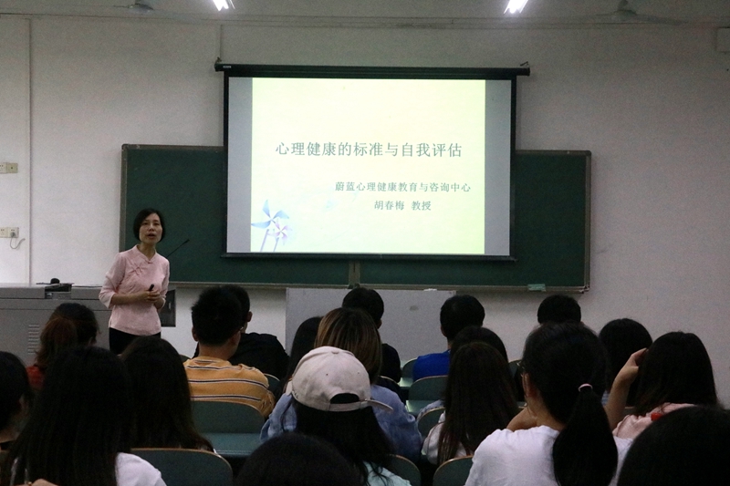 6月9日下午,mansion88明升在知行楼A101举行大学生心理健康讲座,讲座由蔚蓝心理健康教育与咨询中心胡春梅教授主讲,学院各班心理健康委员、寝室室长以学生代表80余人参加讲座。