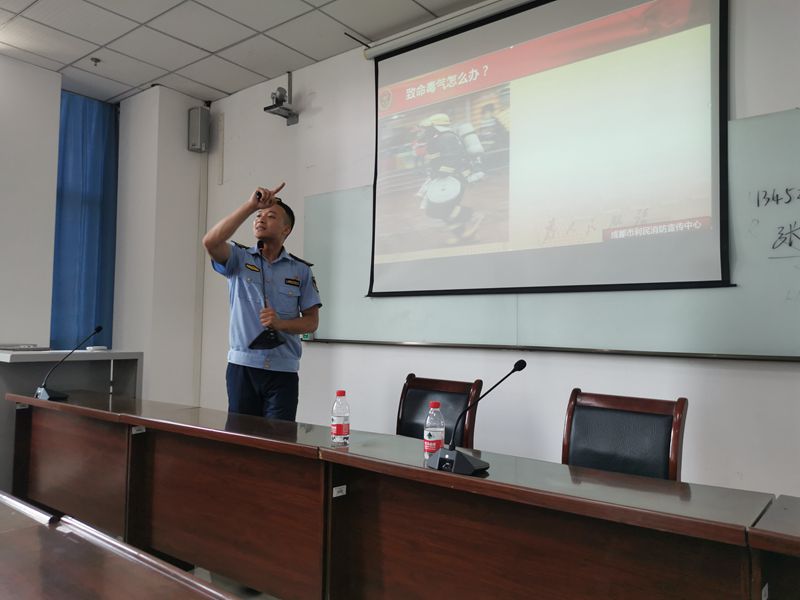 政治理论学习结束后,重庆市利民防火宣传培训中心李进教官通过真实的火灾案例讲解了防范火灾的重要性,他通过一个个真实的火灾案例,深入浅出的讲述了消防安全的重要性,介绍了火灾中自救逃生的方法以及灭火器的种类、操作使用方法等一系列防火安全知识。