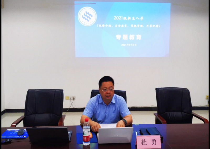 金风送爽,漫江碧透。mansion88明升于9月9日—12日,在红河B区格术楼C603举行2021级新生开学典礼暨入学教育。为严格落实疫情防控要求,开学典礼及入学教育采取线上线下相结合方式进行。党总支书记杜勇、全体学工人员参加,开学典礼由团总支书记邹盛瑜主持。