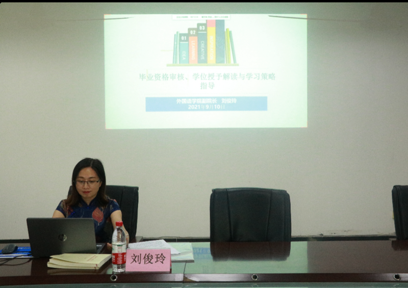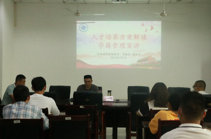 副院长胡庆洪对人才培养方案做了细致解读,并宣讲了学籍管理细则,强化了同学们的专业认识;副院长刘俊玲对专业思想学习、英语专业人才培养方案以及学位授予等进行了讲授,希望同学们培养良好的专业思想和学习策略。