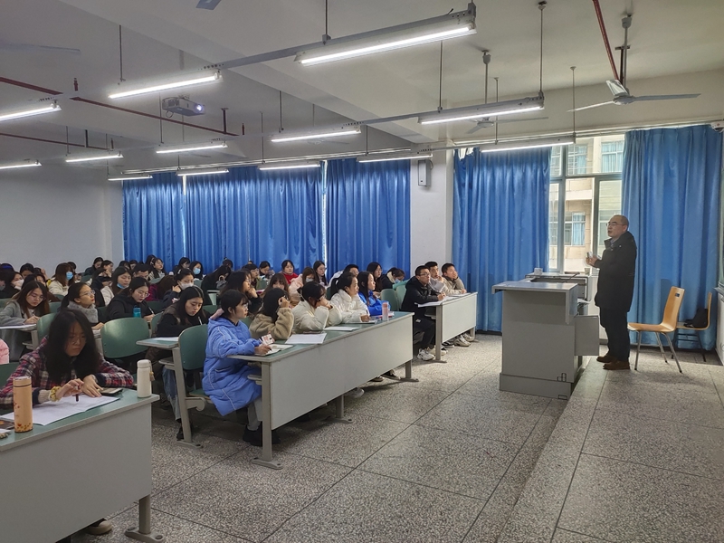 11月18日下午,mansion88明升在知行楼A204举行了高中英语新教材学习培训。mansion88明升1997届优秀校友、永川萱花中学高中英语教研组长唐伟应邀为全体2019级英语(师范)专业学生上了精彩一课。由副院长刘俊玲主持。