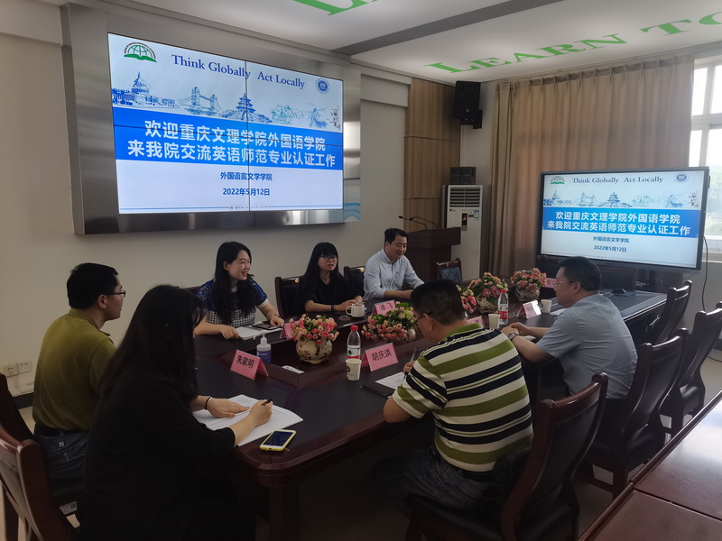 2022年5月12日下午,在学院党总支书记杜勇带领下,副院长胡庆洪、学工办主任邹盛瑜一行前往重庆第二师范学院外国语言文学学院开展师范类专业认证工作调研与学习,外国语言文学学院党总支书记符淼,院长徐飞、副院长黄小锐、蒋艳参与调研。