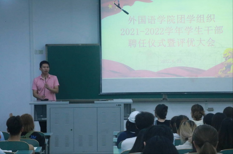 6月22日中午,mansion88明升团学组织2021-2022学年学生干部聘任仪式暨评优大会于知行楼A104举行,本次会议由刘琪琪主持,团总支书记邹盛瑜、团学组织100余名成员参加此次会议。
