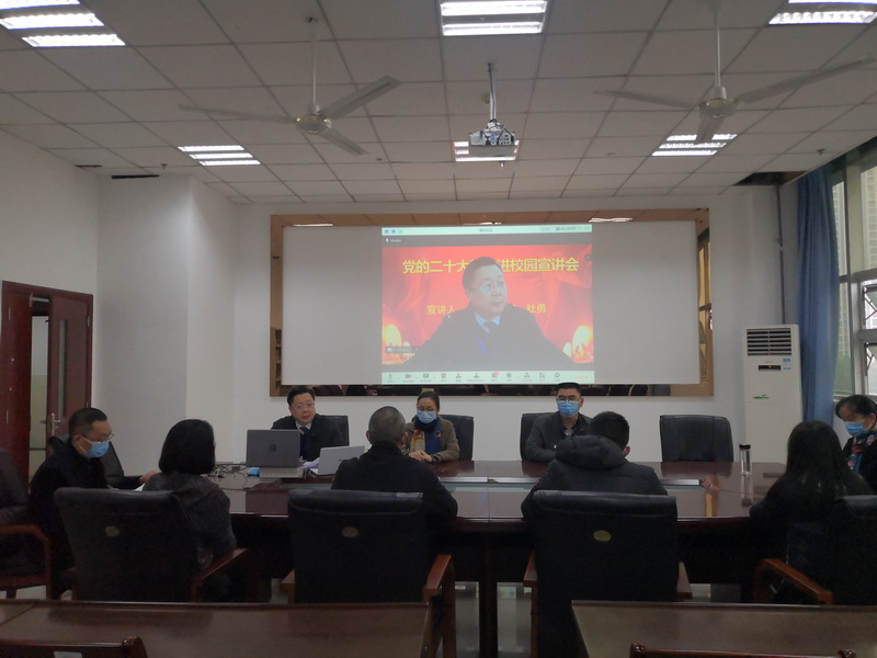 11月30日下午,党总支书记杜勇通过线上线下结合的方式,为学院全体教职工、全体学生党员宣讲了党的二十大精神。