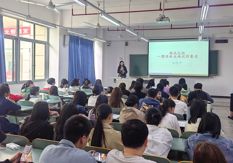 活动中,赵老师从面试的技巧、形象、礼仪、着装等方面做了详细讲解,她以丰富的案例,幽默的语言,生动的表情,赢得在场阵阵掌声。与会学生纷纷表示,赵老师的讲座实用,有针对性,相信能对面试找工作起到积极的作用。