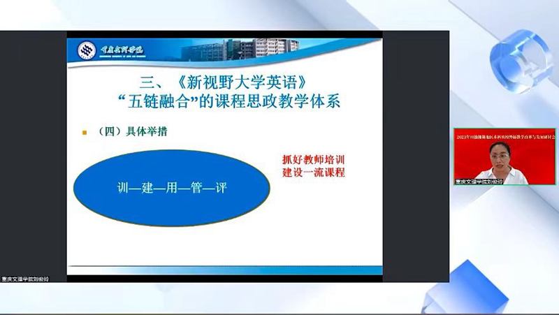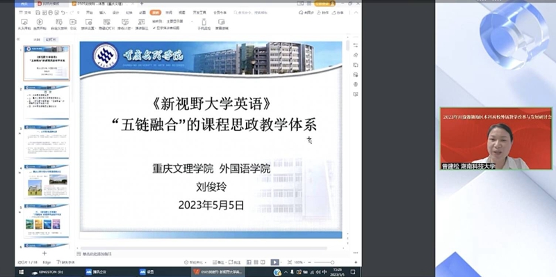 5月5日,由外语教学与研究出版社主办,重庆市外文学会、湖南省高等教育学会大学外语专业委员会、江西省大学外语教学研究会、四川省普通本科高校外国语言文学类专业教学指导委员会协办的“2023年川渝湘赣地区本科高校外语教学改革与发展研讨会”在线上举行,mansion88明升副院长刘俊玲应邀在会上做交流发言。来自川、赣、湘、渝等省份3000多名教师齐聚云端,mansion88明升组织教师线上线下观看了会议直播。