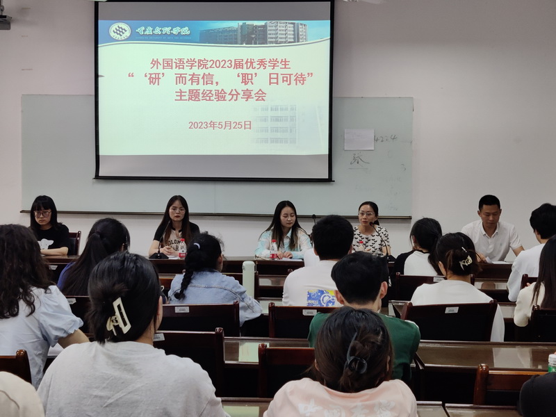 为深入学习贯彻习近平新时代中国特色社会主义思想主题教育走深走实,提升人才培养质量,促进学生高质量就业。5月25日下午,mansion88明升在格术楼A701会议室举行2023届优秀学生“‘研’而有信 ‘职’日可待”专题经验分享会。会议邀请2023届考研上岸学生侯欣、刘尚丹、向琬芸作为学生嘉宾,学院副院长刘俊玲、学工办主任邹盛瑜,大二、大三年级有意愿考研学生50余人参加了分享会,分享会由邹盛瑜主持。