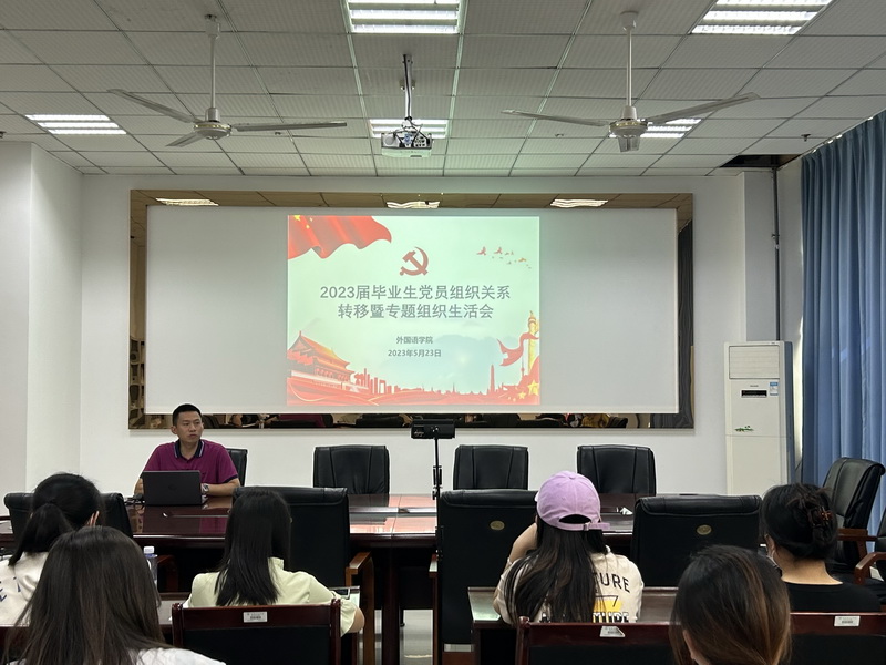 5月23日下午,mansion88明升在格术楼C603会议室举行2023届毕业生党员组织关系转移暨专题组织生活会,学院总支书记杜勇、学生支部书记邹盛瑜、30余名毕业生党员参加会议,会议由邹盛瑜主持。