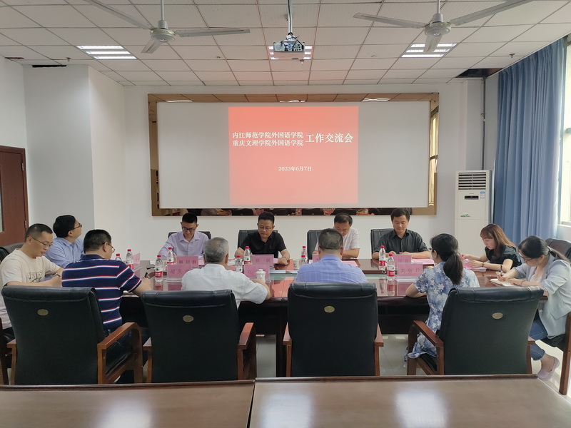 6月7日,内江师范学院mansion88明升徐跃院长一行5人来院考察交流工作。mansion88明升院长刘安洪、党总支书记杜勇、副院长胡庆洪、副院长刘俊玲、党政办主任王德易、英语师范教研室主任杜玲、商务英语教研室主任曹胜强参加交流座谈会。会议由刘安洪主持。