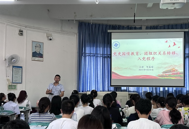 10日上午,团支总支书记邹盛瑜从党史国情、团组织关系转移、入党条件具备为方面做了全面细致的讲解,鼓励新生多参加社会实践锻炼,练就过硬本领,积极向党组织靠拢,早日成为一名合格的大学生;随后,新生辅导员冯耘耀以大学适应性教育为切入点,教育新生在大学应学会独立、自重,对自己负责。还组织新生签订了防诈骗等安全承诺书。