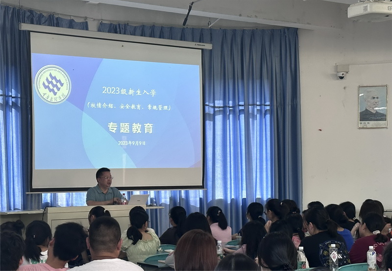 学院党总支书记杜勇从校史校情、学校规章制度、反邪教警示等进行了专题教育。他要求新生熟知新生手册,遵守学校规章制度,保护自身安全,尽早融入大学生活,实现人生价值。