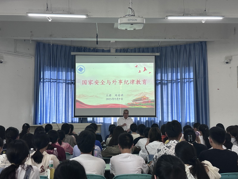 9日上午,学院院长刘安洪以《国家安全与外事纪律教育》为题为新生做了一场精彩的报告,他以大量的案例,诙谐的语言,流利的口语从自身经历、外事纪律要求、正确价值观的树立等方面教育新生牢固树立国家安全意识,严格遵守外事纪律,将“学好外国语,做好中国人”的誓言铭记于心,践于行。