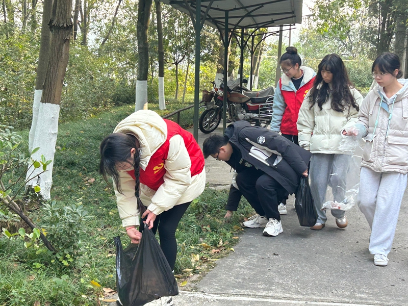活动期间,志愿者分为三队,分别沿桃花岛及一教楼周边、星湖广场及二教楼附近、三教楼及周边环境开展清洁卫生清扫。志愿者人手一个垃圾袋,穿梭在校园的各个角落,一次次找寻,一次次弯腰,在冬日暖阳下始终保持着对志愿服务的热忱,不怕脏、不怕累地进行卫生清理,为营造一个干净整洁的环境,共同建设美丽校园。