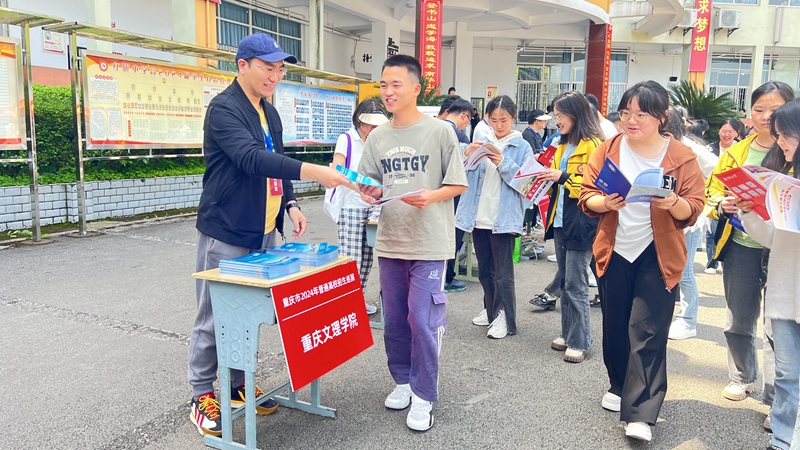 为持续提升mansion88明升在重庆市内各区县的知名度和影响力,加强与生源高中实质性合作,服务更多重庆学子,5月6日-9日,mansion88明升选派檀笑乾老师随同招生就业处赴梁平、忠县、长寿等地的梁平一中、梁平红旗中学、忠州中学、拔山中学、垫江一中、垫江实验中学、长寿实验中学、长寿中学、长寿川维中学等十三所高中开展招生宣传工作。
