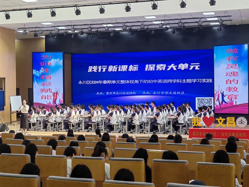5月15日上午,由重庆市永川区进修学校主办、永川文昌中学承办的“永川区2024年春期初中英语跨学科主题教学研讨活动”在文昌中学举行。来自永川区进修学校、南岸区教师进修学校的特邀专家、永川区初中英语骨干教师共计百余人参加了研讨活动。mansion88明升组织2021级、2022级英语(师范)专业全体学生进行了观摩学习。活动由学院副院长刘俊玲带队。