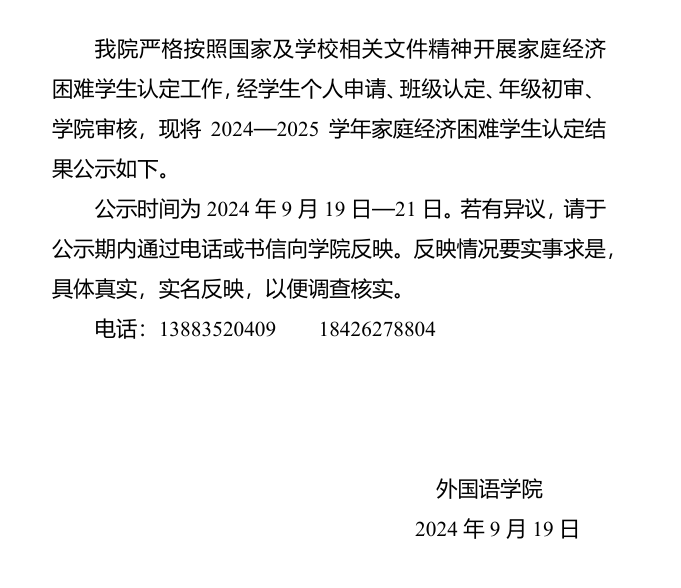 mansion88明升2024—2025学年家庭经济困难学生认定结果公示