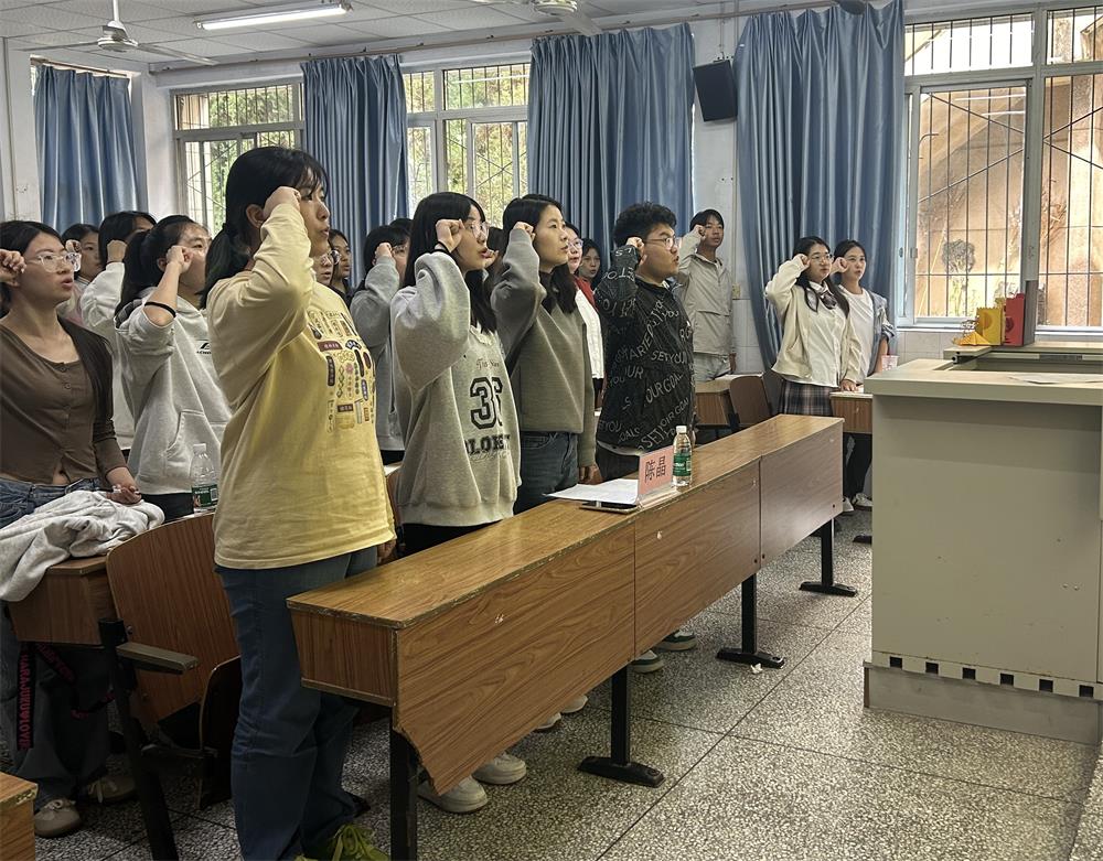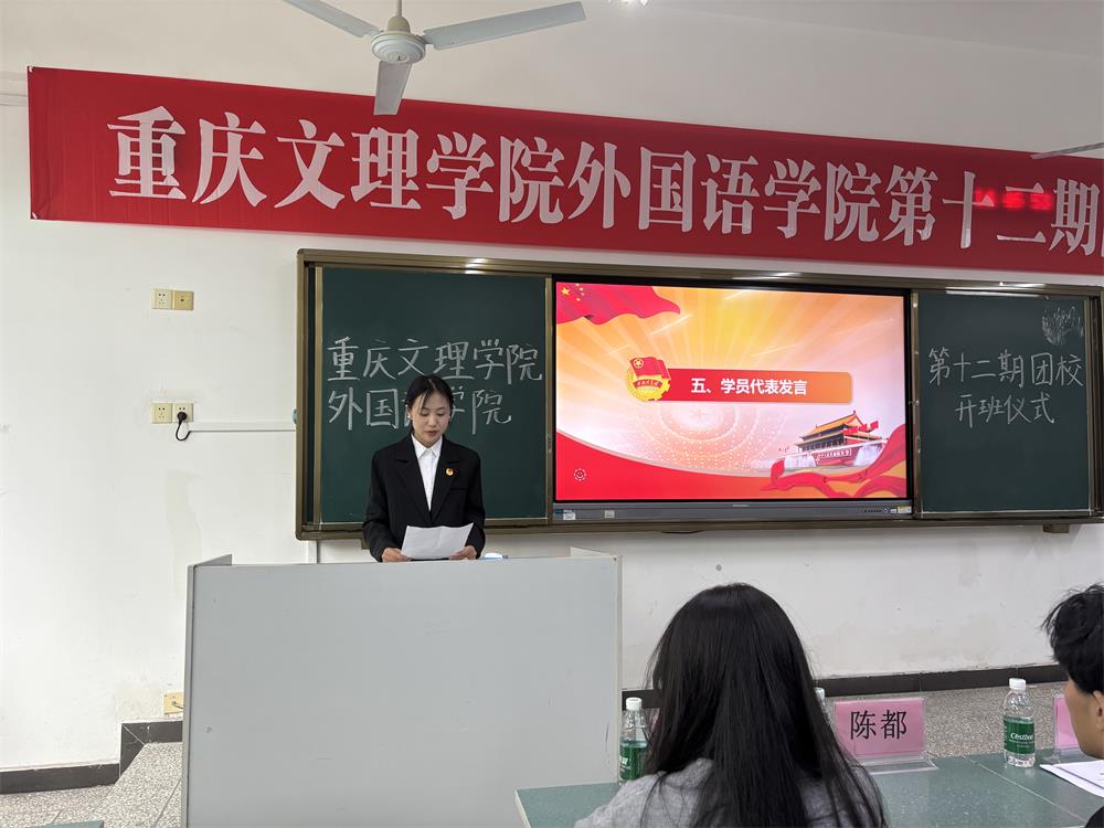 开班仪式在中国共产主义青年团团歌声中拉开序幕。全体团员高举右拳,重温入团誓词,再一次接受“沉浸式”的精神洗礼。陈晶宣读本期团校管理办法,从考勤管理、课堂管理、结业要求等方面提出明确要求,并叮嘱学员们要高标准要求自己,充分发挥先锋模范作用。学员侯娜代表全体参训学员做了表态发言,她表示这是个人成长的宝贵机会,她将以饱满的热情、严谨的态度投入到本次团校学习中,不断提升自我,用实际行动践行青春誓言。最后,李云勉励全体学员要做理想远大、信念坚定的模范,要做刻苦学习、锐意创新的模范,要做敢于斗争、善于斗争的模范,成为有理想、敢担当、能吃苦、肯奋斗的新时代好青年。