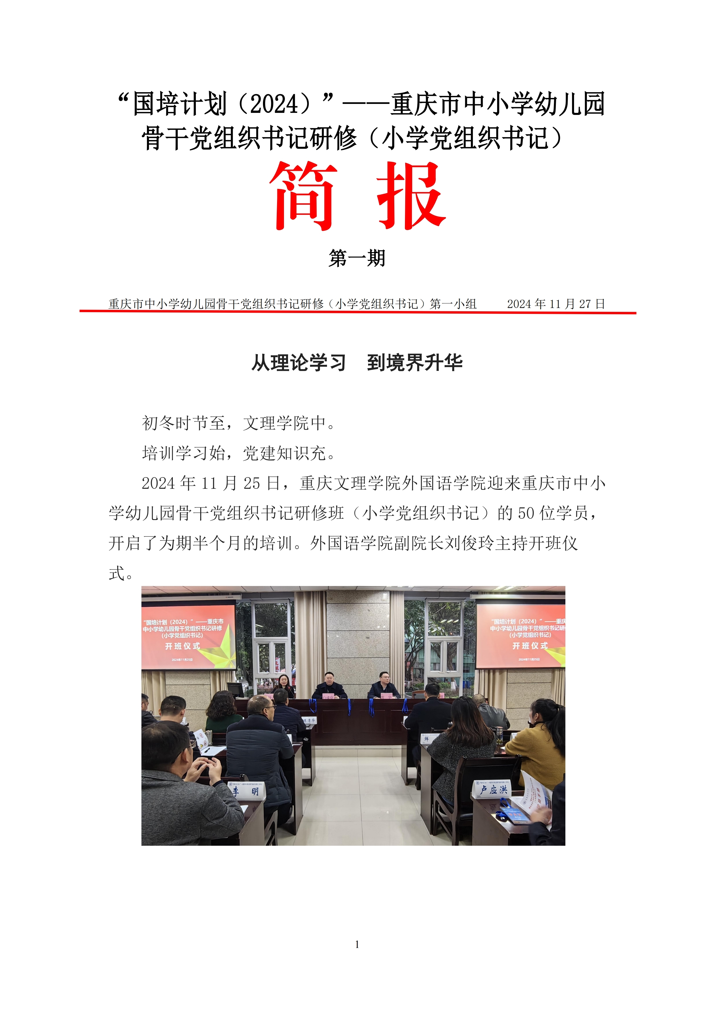 “国培计划(2024)”——重庆市中小学幼儿园 骨干党组织书记研修(小学党组织书记)简报