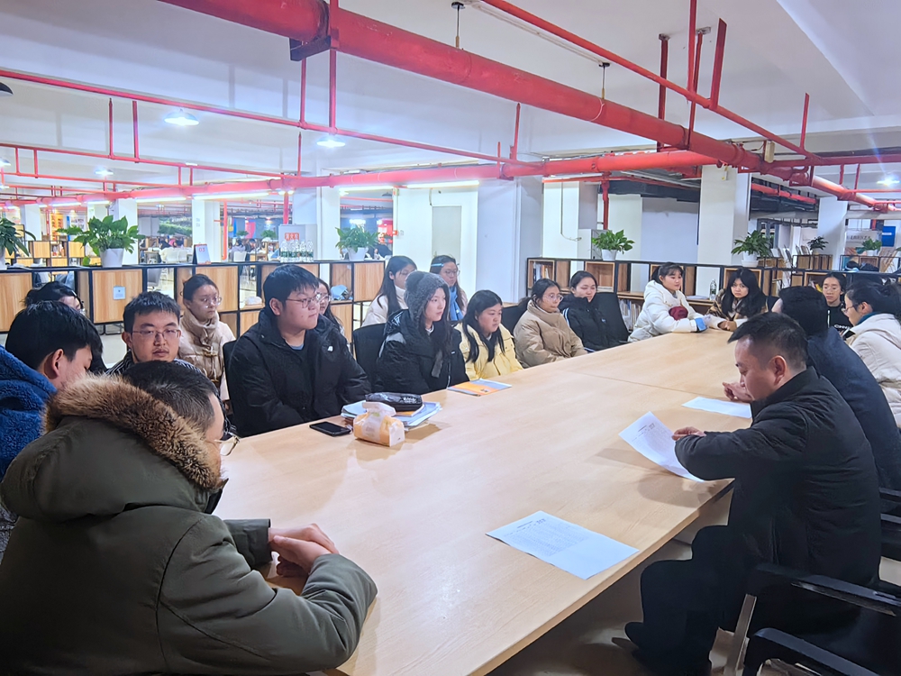 12月18日,学院党委书记雷宇、党委副书记李云深入书香观云社区慰问2025年研究生招生考试学生,学工办主任陈晶、辅导员姜晓涵参加。