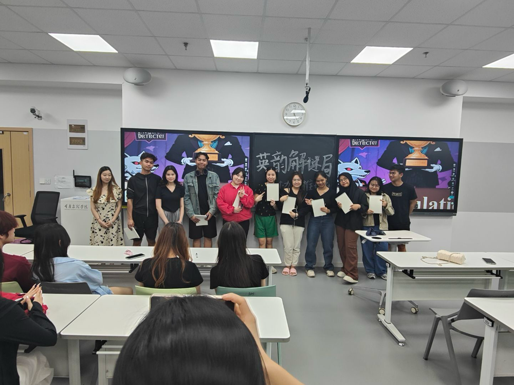 本次口语角活动包括“案件分析”“对话推理”“单词谜语”“数英成林”等环节,通过推理元素与英语口语练习相结合方式,中外学生积极互动,增进了彼此的跨文化交流与理解,营造了开放包容的学习氛围。