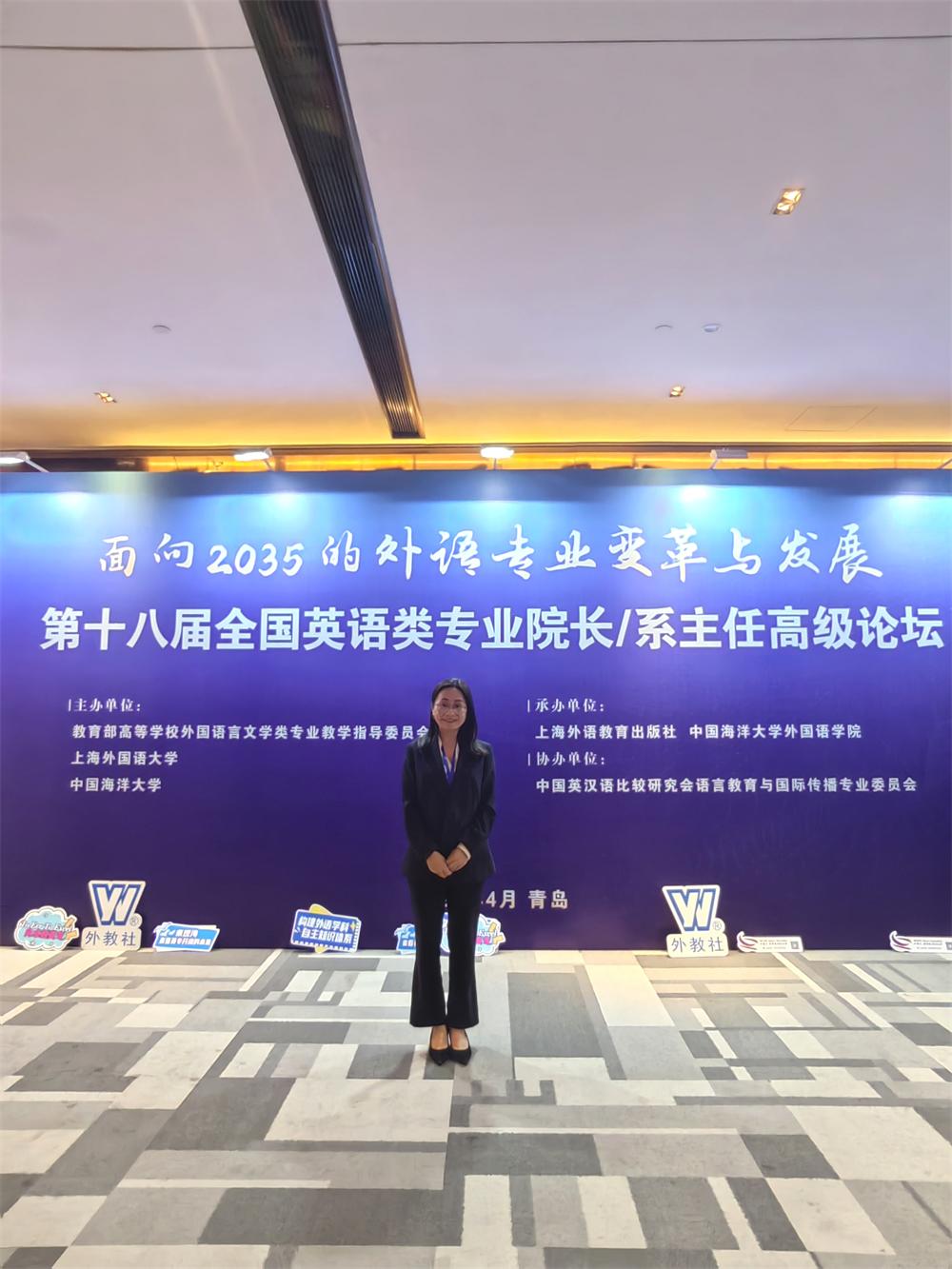 4月10日—12日,mansion88明升院长刘俊玲应邀赴青岛参加第十八届全国英语类专业院长/系主任高级论坛。该论坛由教育部高等学校外国语言文学类专业教学指导委员会、上海外国语大学、中国海洋大学联合主办,上海外语教育出版社、中国海洋大学mansion88明升承办,中国英汉语比较研究会语言教育与国际传播专业委员会协办。