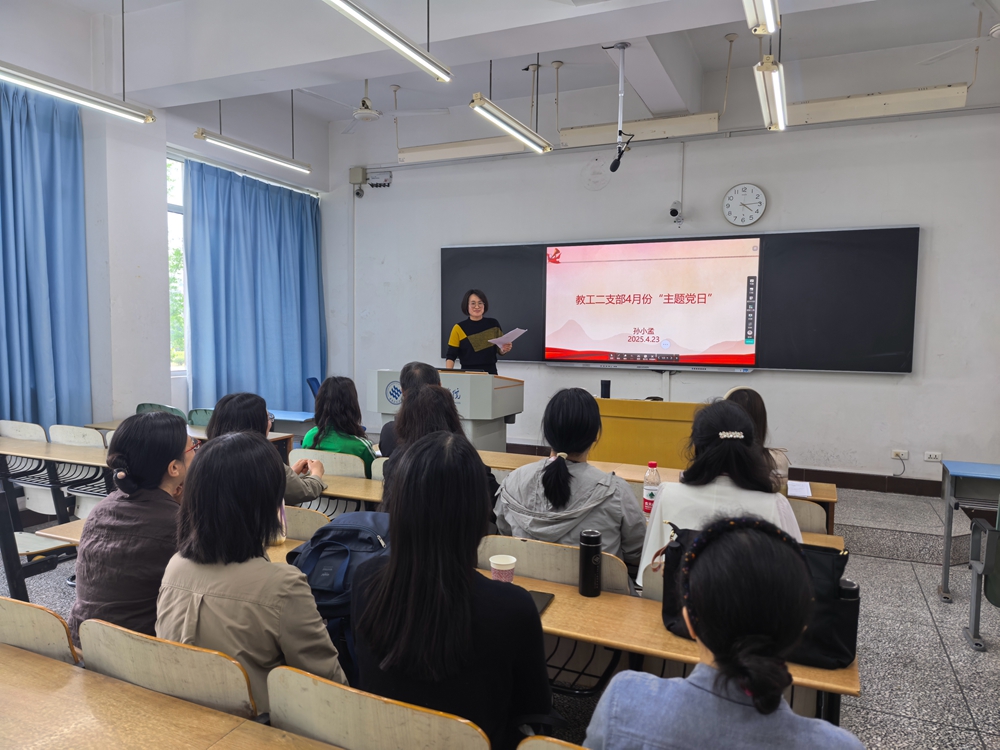 4月23日下午,院党委教工第二支部在知津楼B205开展主题党日。主题党日由支部书记孙小孟主持,支部全体党员参加了学习活动,民主党派代表徐辉列席会议。