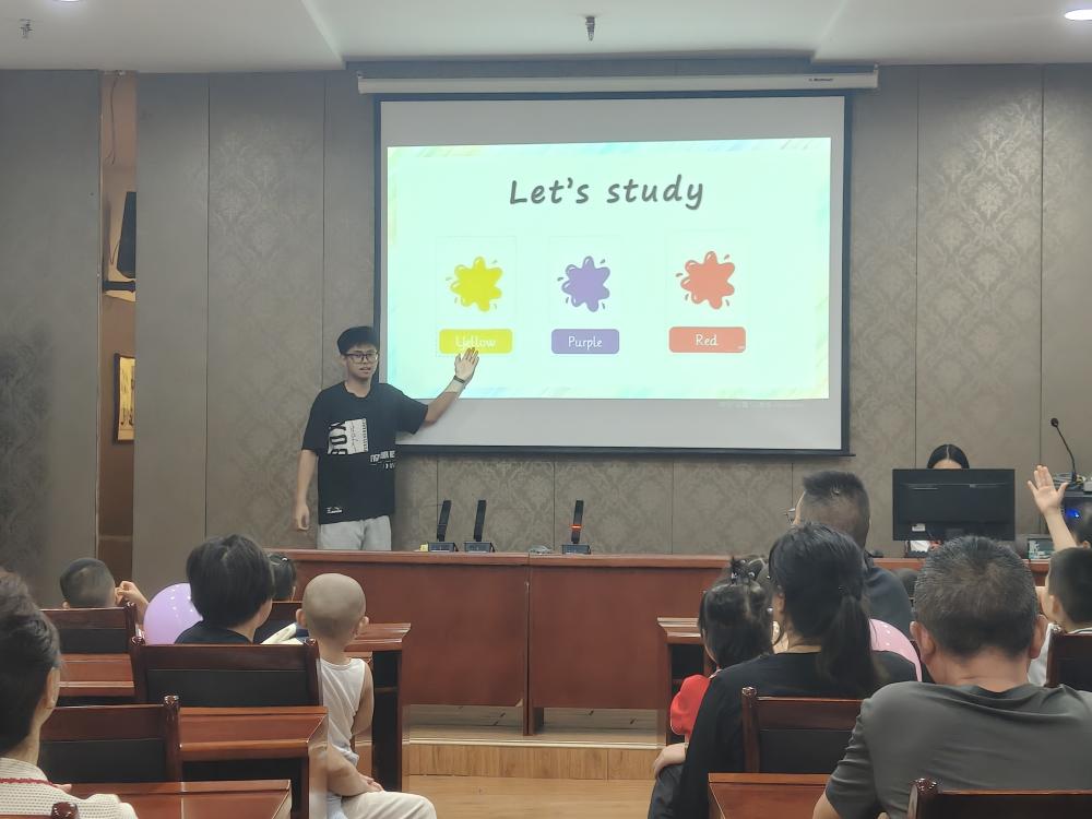 本次活动根据年龄层分为两个教学班级。针对6岁以下的小朋友,活动围绕“”red、orange、yellow、green、blue”等颜色有关的基础词汇展开,特别设计了“夹娃娃游戏”,让孩子们在愉快的笑声中通过夹取不同颜色的娃娃,反复巩固对颜色单词的记忆。针对6岁以上的儿童,活动重点在于提升他们对单词和简单句子的运用能力,课程中穿插了“名字拍拍乐”“动物模仿大赛”“颜色寻宝大作战”等趣味环节。