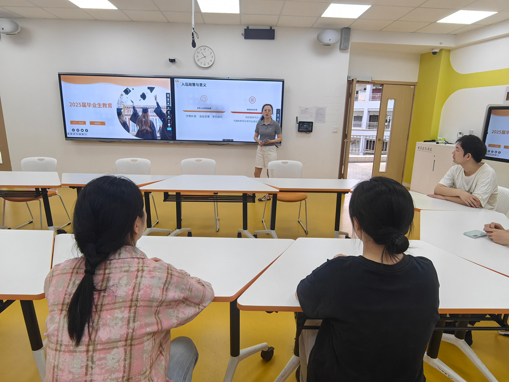 最后,姜晓涵围绕就业创业指导、安全教育、廉洁教育、征兵宣传以及文明离校教育等内容进行了详细讲解,为毕业生们上好在校最后一课。