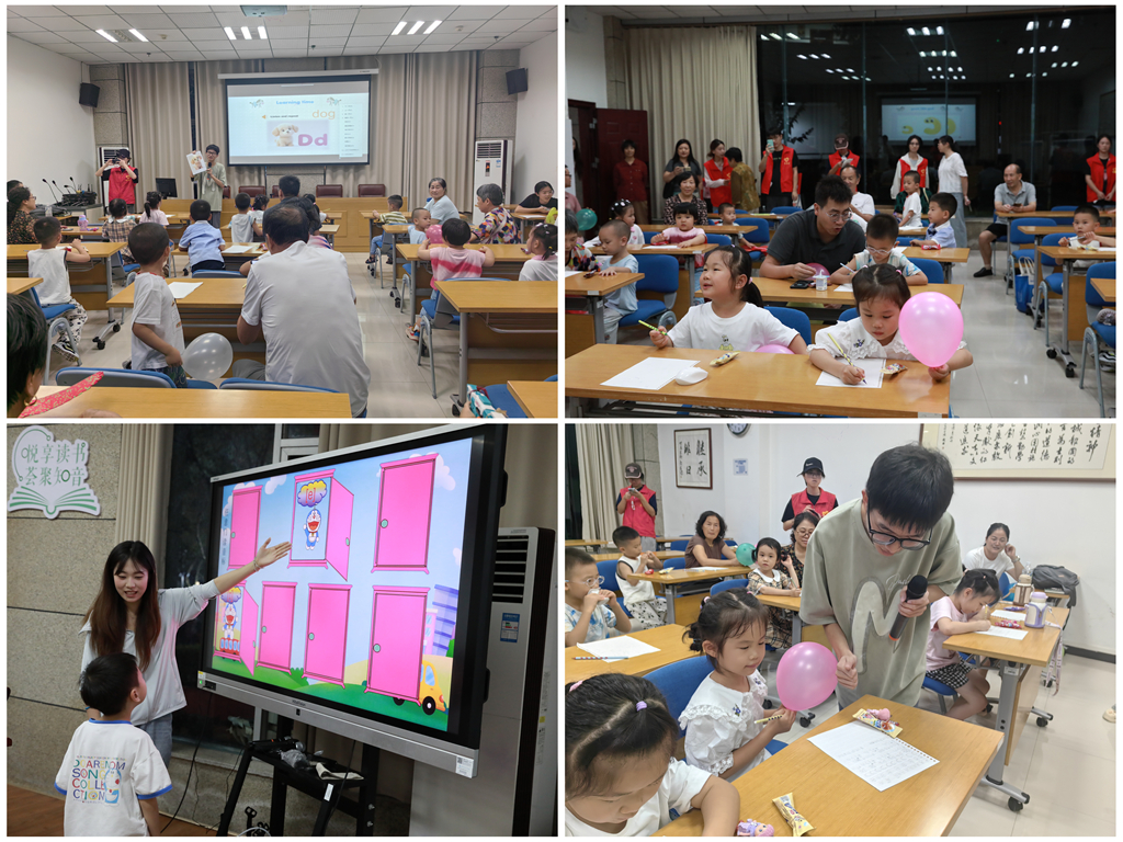 活动根据儿童年龄分为两个教学班级进行。面向六岁以下幼儿,通过齐唱《ABC Song》、展示玩具图片等方式,引导孩子在轻松氛围中认识字母,并借助动物单词和“大E像梳齿,小f像拐杖”等比喻,帮助形象记忆字母发音与形状。针对六岁以上儿童,课程则从声带振动原理入手,区分元音与辅音,系统讲解长短元音及其应用,并结合“看图片猜音标”“发音闯关”等游戏环节,增强学习的趣味性和参与感。