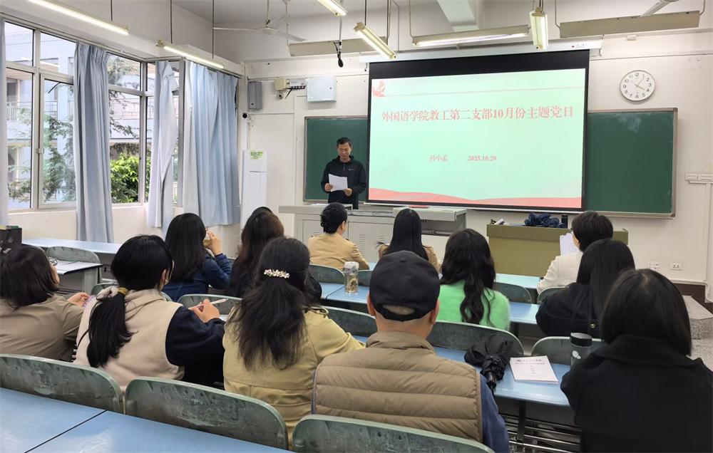 10月29日下午,院党委教工第二支部在知津楼B414开展主题党日。主题党日由支部书记孙小孟主持,支部全体党员参加了学习活动。