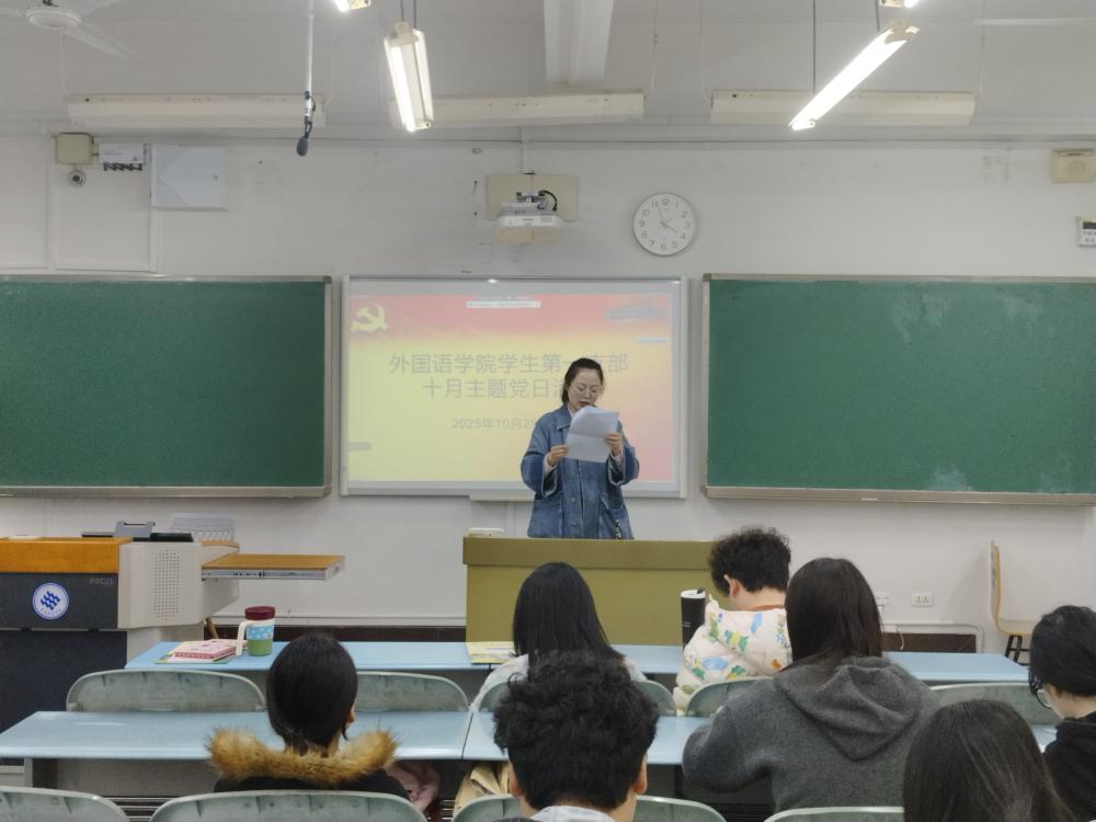 2025 年 10 月 29 日,mansion88明升党委学生第一支部在知津楼 B415 开展主题党日活动,重点围绕重要文件学习、党费规范管理及红色题材节目展演三大内容推进。活动由姜晓涵同志主持,支部全体党员参加。